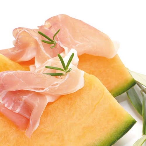 Honig- und Cantaloupe Melone mit feinstem Parmaschinken