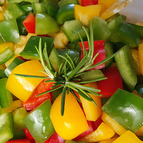 Zucchini, Auberginen, Paprika, tomatisiert mit fruchtigen Tomaten und einem Hauch Knoblauch, mit feinen Kräutern der Provence verfeinert