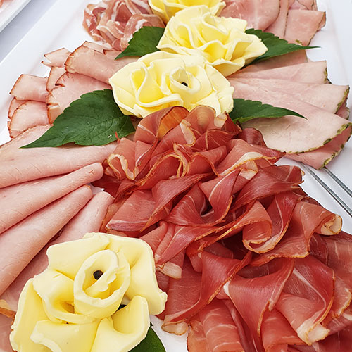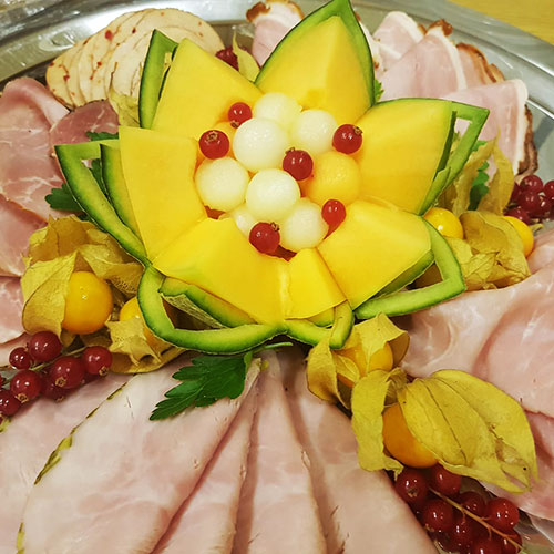 Unser Mitternachtsbuffet mit wunderschönen kalten Platten, liebevoll garniert mit herrlichen Butterrosen oder frischem Obst. Belegt mit einer hochwertigen und großen Auswahl regionaler und internationaler Köstlichkeiten. Ein wahrer Augenschmaus und Appetitanreger auf allen Buffets zur späten Stunde oder auch zu Geburtstagen, Geschäftsessen, Feiern und Partys! Kombinieren Sie das Buffet auch gerne mit unseren Fingerfood-Angeboten!