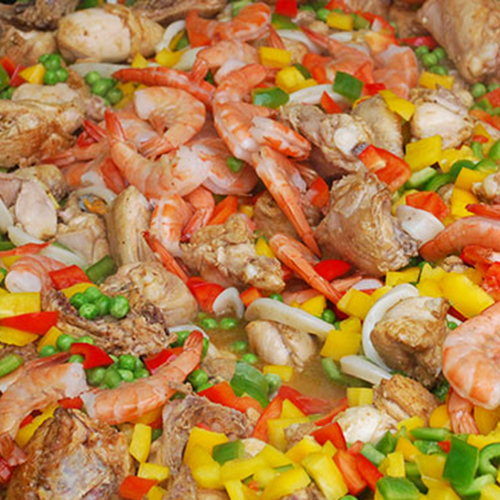 Mit Knackigem Gemüse, Reis, feinen Meeresfrüchten, Fischfilet, Shrimps und zartem Hähnchenbrustfilet